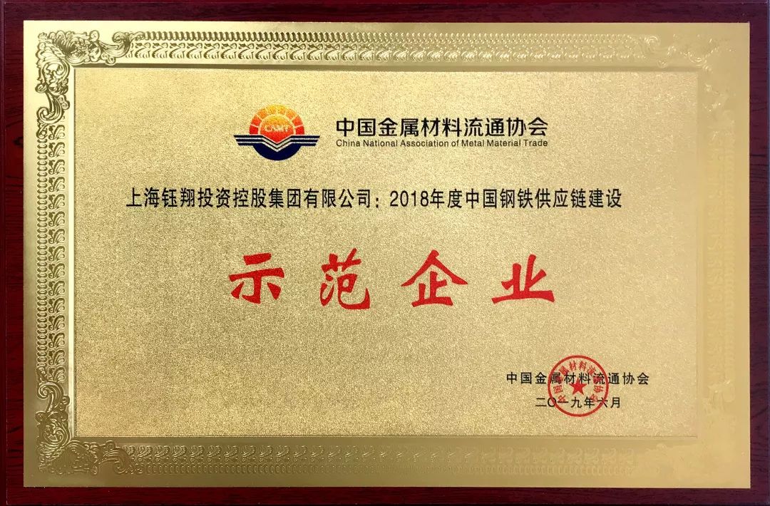 會上頒發了一系列鋼鐵行業內的年度大獎,鈺翔控股集團憑借在鋼鐵智慧供應鏈領域取得的成果、實力和口碑榮獲中國金屬材料流通協會2018年度中國鋼材銷售50強、2018年度中國鋼鐵供應鏈建設示范企業兩項殊榮。