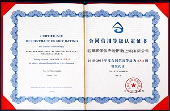 日前,鈺翔控股集團旗下鈺翔環(huán)保供應(yīng)鏈管理(上海)有限公司、上海久源經(jīng)貿(mào)發(fā)展有限公司被評為“2018-2019年度上海市守合同重信用企業(yè)”,并榮獲AAA級合同信用等級認定。