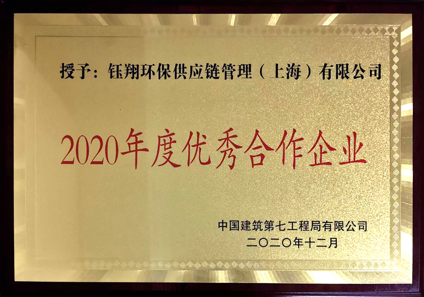 12月17日,集團子公司鈺翔環(huán)保供應(yīng)鏈管理(上海)有限公司榮獲“中建七局2020年度優(yōu)秀合作企業(yè)”榮譽稱號。此前集團已多次榮獲中建七局第一建筑有限公司優(yōu)秀供應(yīng)商、中建七局南方公司優(yōu)秀供應(yīng)商等諸多七局榮譽,此次榮獲中建七局優(yōu)秀合作伙伴,這表明集團為中建七局各級單位提供的優(yōu)質(zhì)建材供應(yīng)鏈管理服務(wù)得到了中建七局總局的認可。