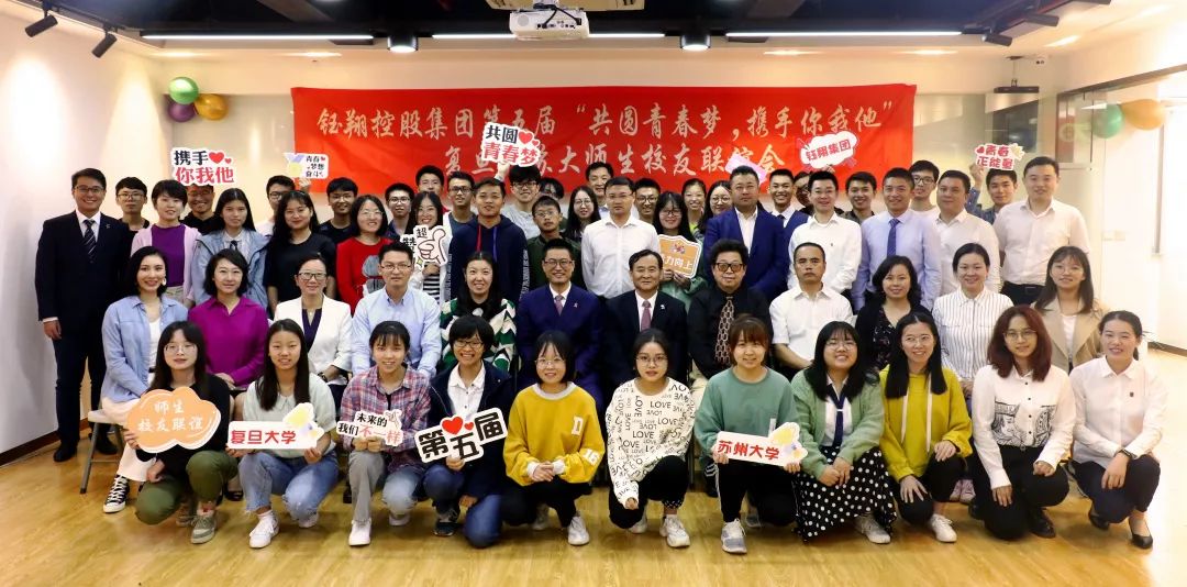 10月13日,鈺翔控股集團在總部舉辦第五屆“共圓青春夢、攜手你我他”復旦、蘇大師生校友聯(lián)誼會。復旦大學、蘇州大學帶隊領導和老師及復旦、蘇大兩校2016-2018級鈺翔獎助學金受助學生參加了聯(lián)誼會。集團董事葛衛(wèi)國、黨總支書記秦祖煌、黨總支副書記朱國興、上海交通大學中國中小企業(yè)研究中心主任張毅偉、集團復旦、蘇大兩校校友及優(yōu)秀員工代表出席了聯(lián)誼會。
